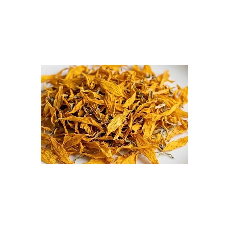 Los pétalos de girasol aportan color natural a infusiones. Secados suavemente y de cultivo ecológico.